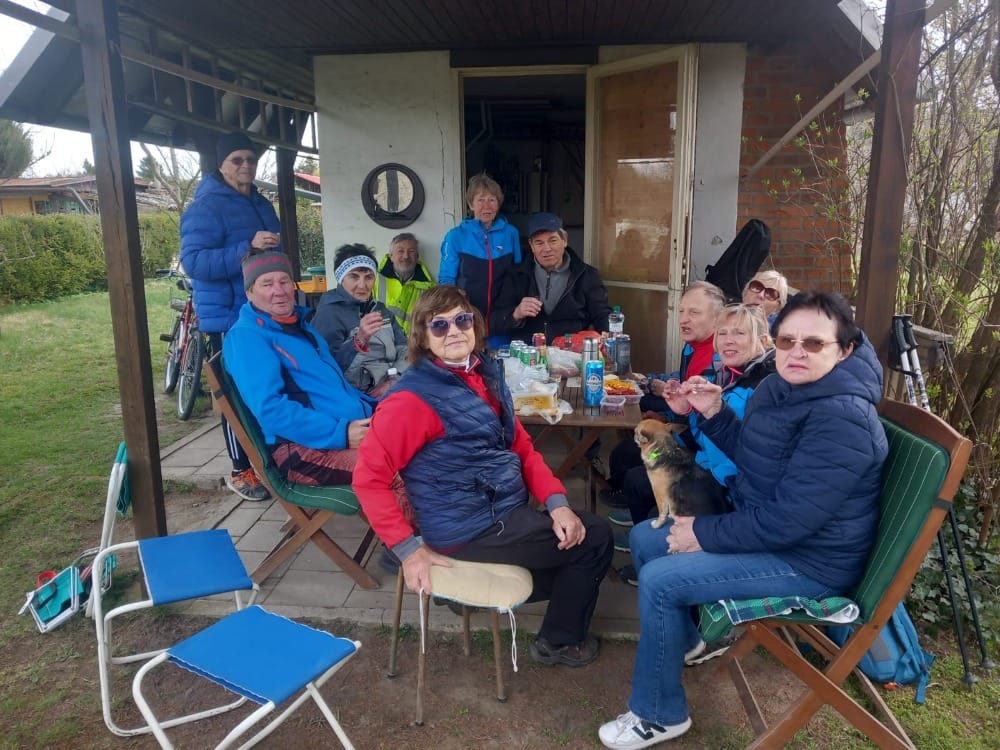 Zdravé jádro, 7 členů + 1 pes se sešlo o půl desáté v Újezdci u Pepy Vojáčka. Po malém občerstvení pak vyrazilo z Újezdce kolem hvězdárny a po jedenácté hodině jsme došli k Jitce na zahradu, která byla krásně rozkvetlá – viz přiložené foto.