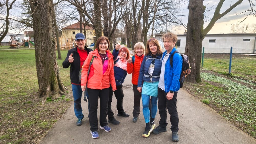 Zdravé jádro, 7 členů + 1 pes se sešlo o půl desáté v Újezdci u Pepy Vojáčka. Po malém občerstvení pak vyrazilo z Újezdce kolem hvězdárny a po jedenácté hodině jsme došli k Jitce na zahradu, která byla krásně rozkvetlá – viz přiložené foto.